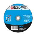 Dischi da taglio per Acciaio - ABRA BETA Centro Depresso. Spessore Sottile. Art. A36S. Linea SILVER Applicazioni: Utilizzabili universalmente per il taglio di acciai non trattati. Precisa e concentrata asportazione di materiale e conseguente basso assorbimento di potenza dell’elettroutensile. Ridotta produzione di bave. UTILIZZO CONSIGLIATO: Smerigliatrice Angolare. Cod. Art. Diametro Spessore Foro Max RPM AB000020230 230 2 22.23 6600